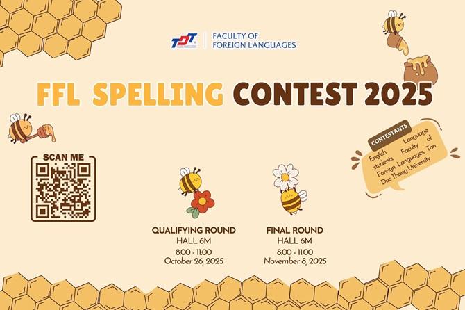 “Spell smart, spark success” – chỉ một chữ cái cũng có thể thay đổi cả một từ, và bạn có muốn chính mình trở thành người tỏa sáng với vốn từ vựng phong phú cùng khả năng phản xạ nhanh nhạy? FFL Spelling Contest 2025 chính là cơ hội dành cho SV FFL–TDTU thể hiện bản lĩnh, kỹ năng đánh vần và tranh tài học thuật.