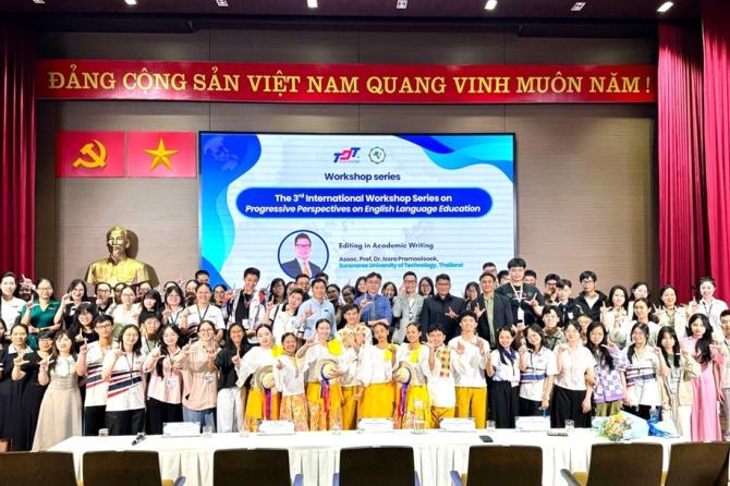 Sáng ngày 14/4/2026, tại Hội trường 10F, Khoa Ngoại ngữ - TDTU đã phối hợp với PGS. TS. Issra Pramoolsook đến từ Trường Đại học Công Nghệ Suranaree (SUT - Thái Lan) tổ chức thành công buổi Workshop chuyên sâu dành riêng cho giảng viên, sinh viên Khoa Ngoại ngữ với chủ đề “Editing in Academic Writing”.