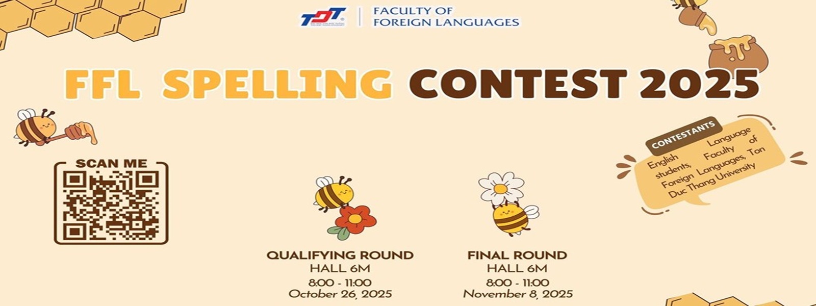 “Spell smart, spark success” – chỉ một chữ cái cũng có thể thay đổi cả một từ, và bạn có muốn chính mình trở thành người tỏa sáng với vốn từ vựng phong phú cùng khả năng phản xạ nhanh nhạy? FFL Spelling Contest 2025 chính là cơ hội dành cho SV FFL–TDTU thể hiện bản lĩnh, kỹ năng đánh vần và tranh tài học thuật.