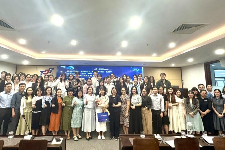 Sáng ngày 13/01/2026 tại phòng A403, Khoa Ngoại ngữ - TDTU đã tổ chức buổi Workshop với chủ đề “Tổng quan chung về ưu và nhược điểm của việc sử dụng AI trong dịch thuật”. Sự kiện đã thu hút sự tham gia đông đảo của gần 200 SV và GV.