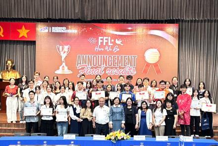 Buổi Tổng kết và Trao giải Cuộc thi “FFL - HERE WE GO 2025” với chủ đề “Tradition & Patriotism” đã diễn ra sáng ngày 06/12/2025 tại Hội trường 6M của TDTU. Tới tham dự buổi Tổng kết và Trao giải, có Ban chủ nhiệm Khoa Ngoại ngữ, đại diện các Phòng Ban cùng với các thầy cô giảng viên và sinh viên Khoa Ngoại ngữ.